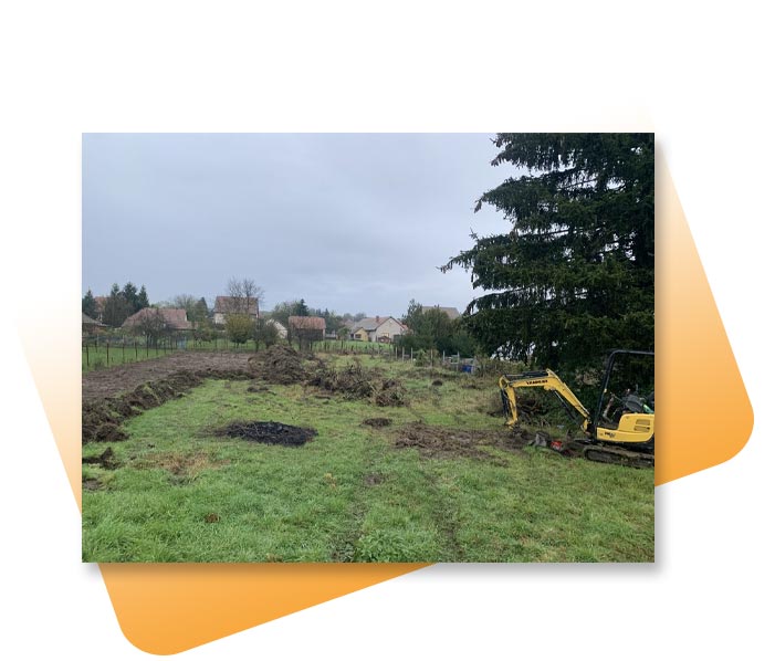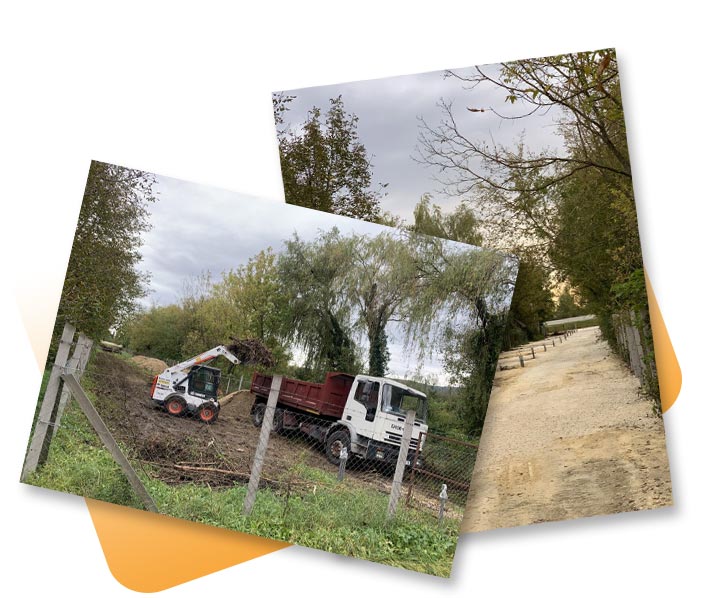 A bozótos, erdős terület helyére a megrendelő konténereket szeretett volna rakatni, ennek megfelelően a feladatunk a bozótirtás, a zöldhulladék elszállítása, tükörszedés, majd konténerek számára murvás terület létrehozása volt. A feladatot teljesítettük.