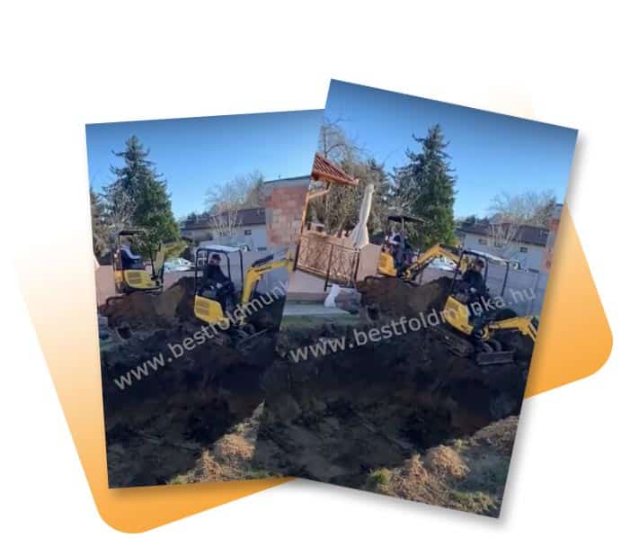 Feladatunk a garázs helyének kialakítása volt, meglévő tervek alapján. A feladat nehézségét a föld keménysége, illetve a szűk helyek adták. Ennek megfelelően nagyon figyelnünk kellett a méretek betartására, mert ha mi tévedünk, az több centi eltolódást jelenthetett volna a beépíthetőségben.