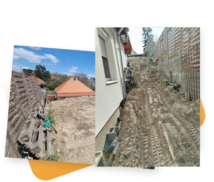 Tündér utca – garázs helyének kialakítása, bontás, ásás