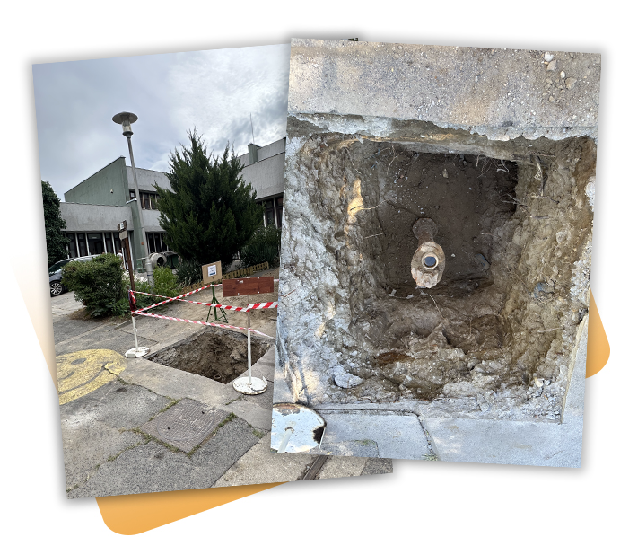 Ferencvárosban egy óvodában vízvezeték-rendszer miatti ásási munkálatokat végeztünk, gondosan elhatárolva a területet a gyermekek és az ott dolgozók védelme érdekében. A pormentes munkavégzést és az SOS határidőt betartva sikeresen teljesítettük a feladatot, a jövőben is számíthatnak ránk.